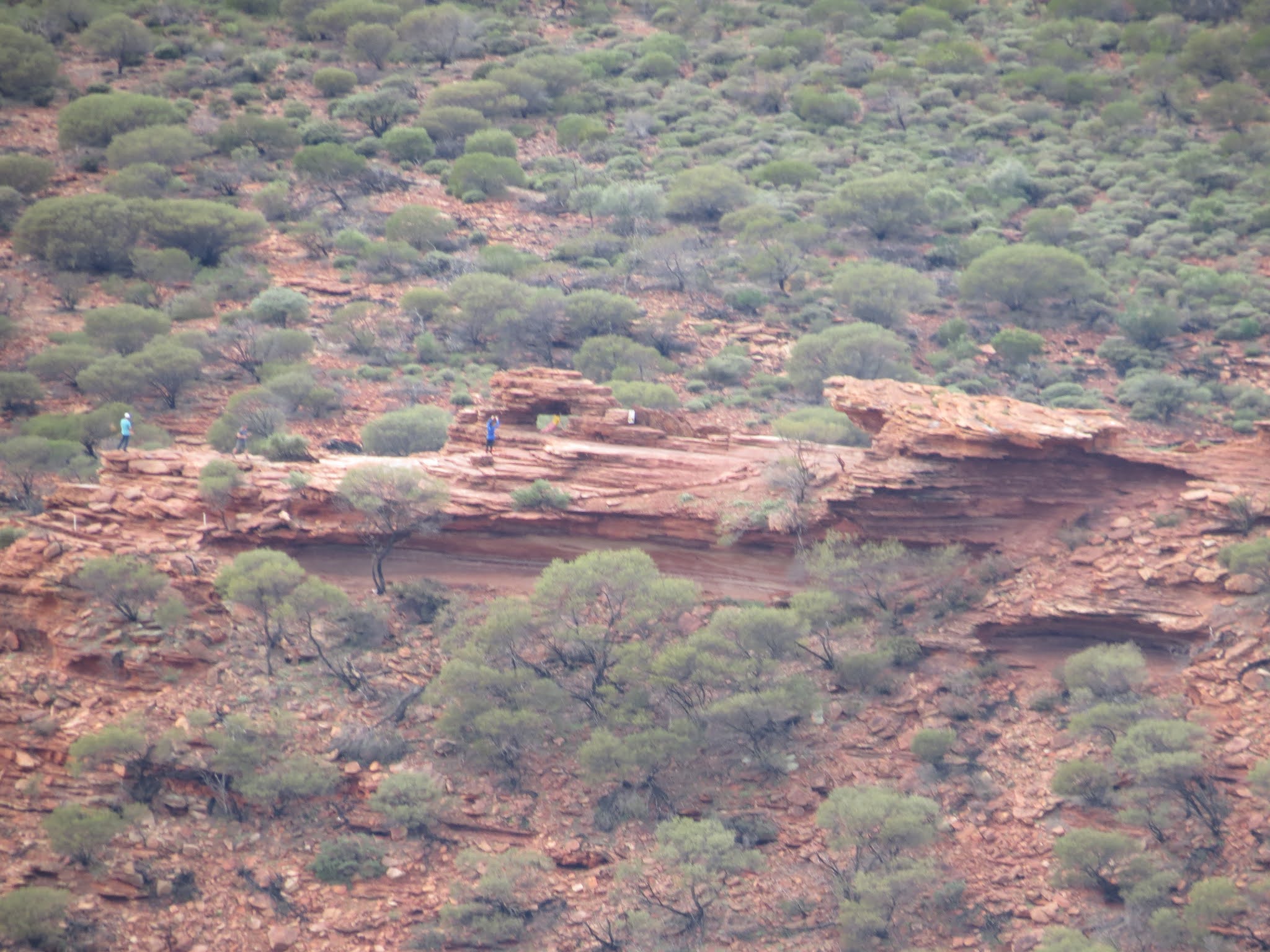 The walk to Natural Arch was relatively easy, but the last 70 metres were rock hopping. And it was a 100 metre drop over the cliff edge below. We each had our “funeral photos” taken sitting in the arch.